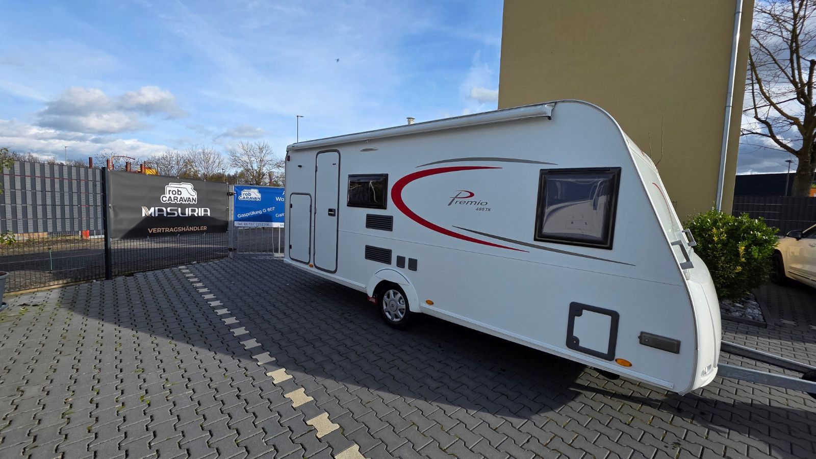 Bürstner Premio 485 TK (2014) – Familienwohnwagen mit Mover, Vorzelt, GFK-Dach & Top-Ausstattung.