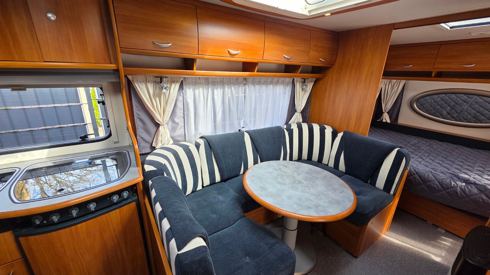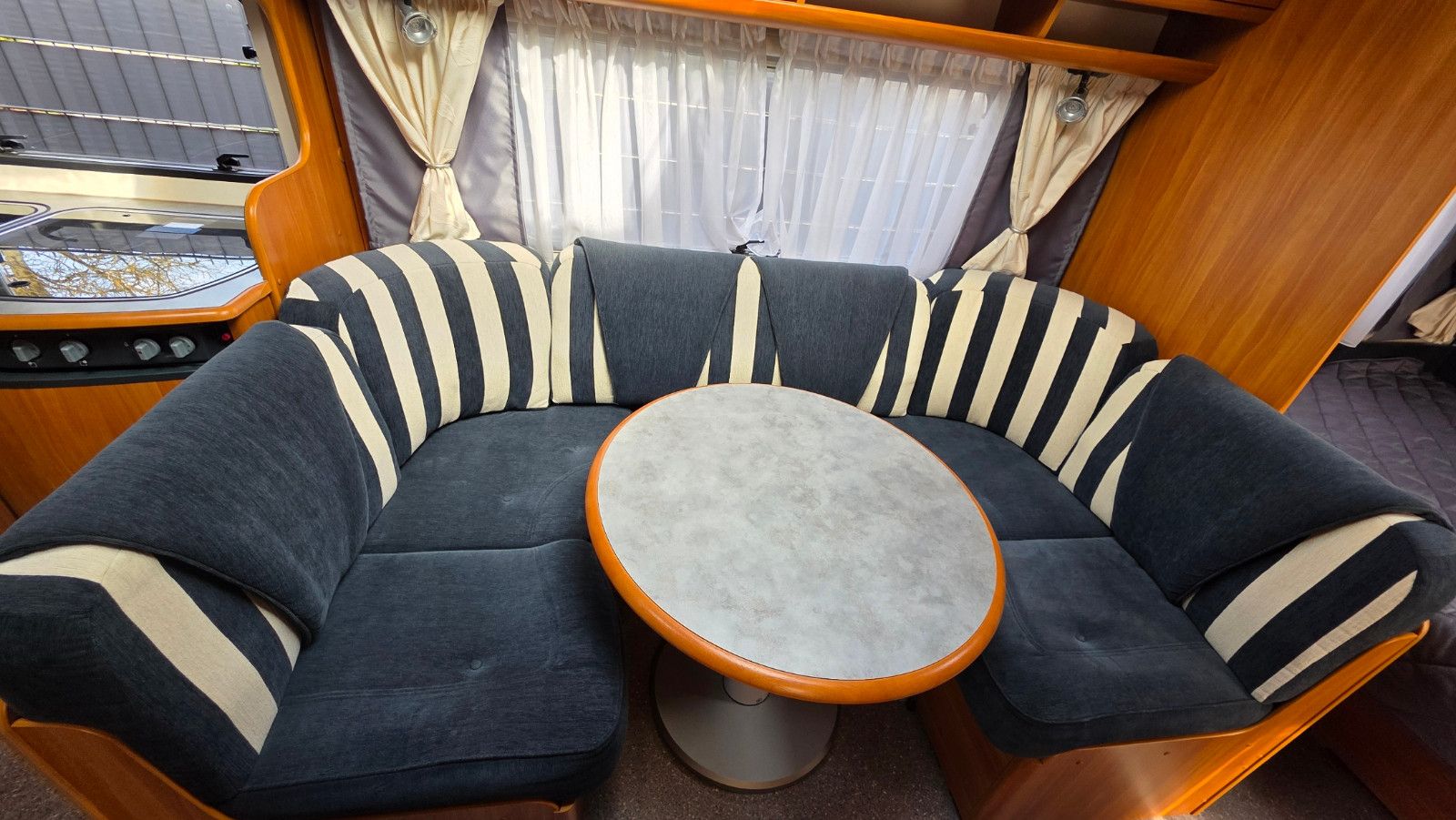 Der Wohnwagen wurde nicht als klassischer Standwagen genutzt, sondern stand die letzten ca. 10 Jahre unbenutzt und geschützt in einer Halle, da die Vorbesitzer auf ein Wohnmobil umgestiegen sind. Genau dieser Punkt erklärt den überdurchschnittlich guten Zustand.