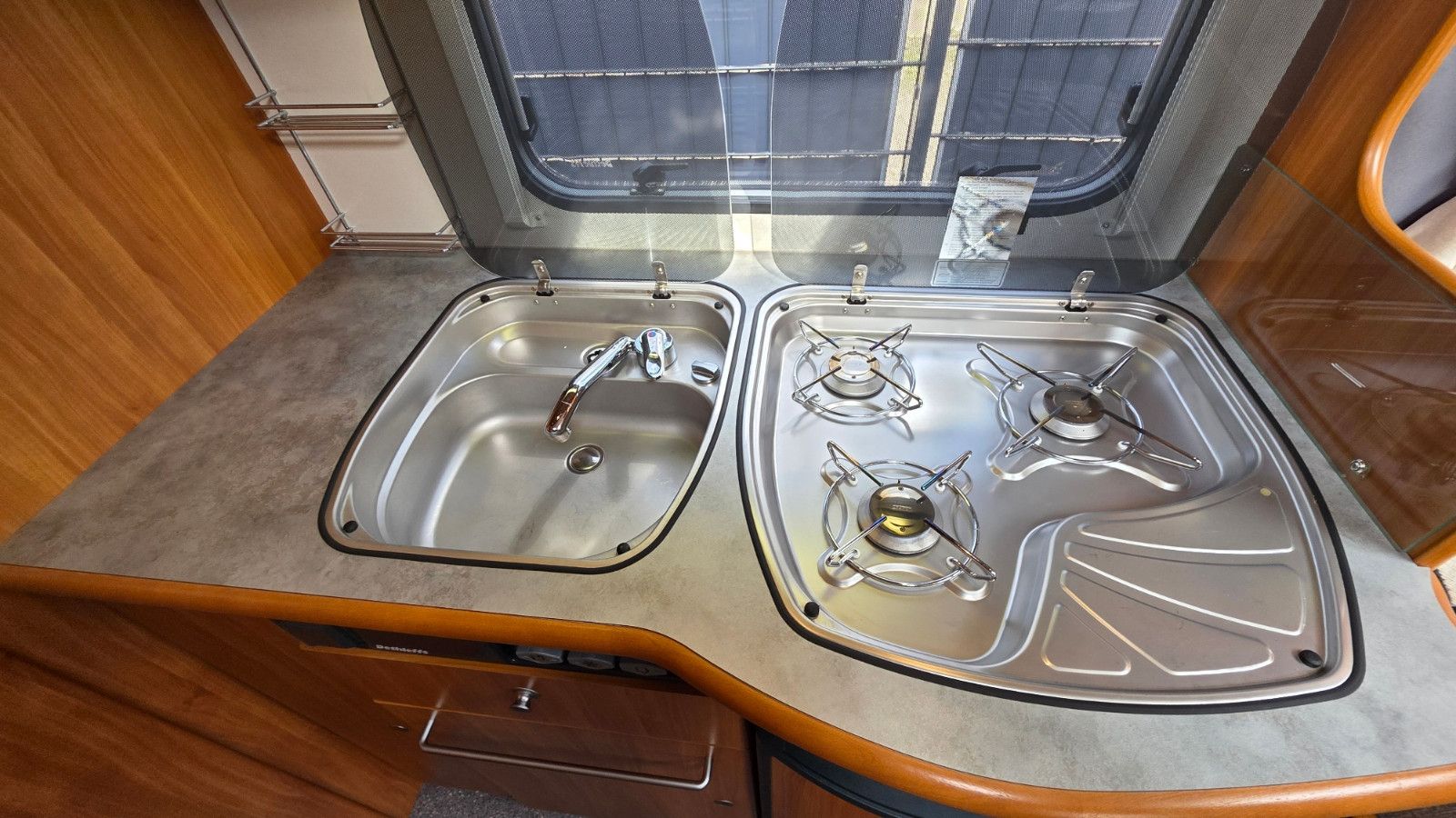 Der Wohnwagen wurde nicht als klassischer Standwagen genutzt, sondern stand die letzten ca. 10 Jahre unbenutzt und geschützt in einer Halle, da die Vorbesitzer auf ein Wohnmobil umgestiegen sind. Genau dieser Punkt erklärt den überdurchschnittlich guten Zustand.