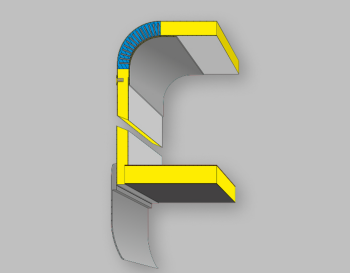 Hagelresistentes Dach mit abgerundeten Seitenkanten sorgt für höchste Dämmung und Wasserdichtheit. Die innere Schicht ist mit Stoff bezogen und bietet zusätzliche Geräuschdämmung im Wohnbereich. Durch die direkte Verbindung von Dach und Seitenstruktur entsteht eine deutlich robustere und langlebigere Verbindung als bei Standard-Eckleistenlösungen.